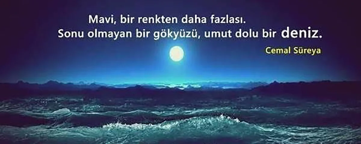 Denizin mavisi ise ferahlık ve özgürlüğün sembolüdür. Dalgaların üzerinde mavi bir örtü gibi yayılan deniz, bizi kucaklar ve içimize huzur verir. Mavi suyun dokusu, serinliği ve berraklığıyla ruhumuzu temizler ve tazelik hissi verir.